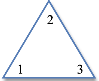 We will now consider a different set and operation. Take your equilateral triangle and mark the vertices 1, 2, and 3 on both faces (you will be flipping them over and will need to identify the same vertex from both faces of the triangle). Orient the triangle as shown in Figure 4.4.2.